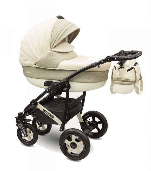 Carriage 2 1 Camarelo Sevilla აქვს სასიამოვნო ღია კრემისფერი შეღებვა. ურთიერთშემცვლელნი მოდულები, შეიძლება ადვილად დამონტაჟებული შასი. აკვანი ნახევარწრიული ბოლოში შეიძლება იქნას გამოყენებული როგორც აკვანი ბავშვი. Inside cradle აქვს რბილი padding ნატურალური ბამბა.