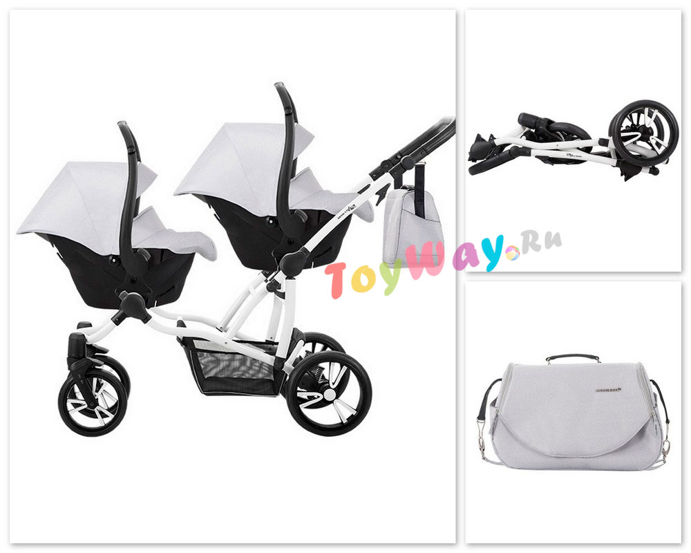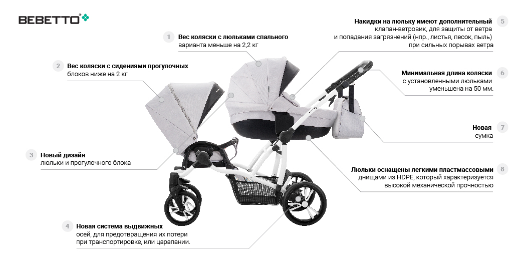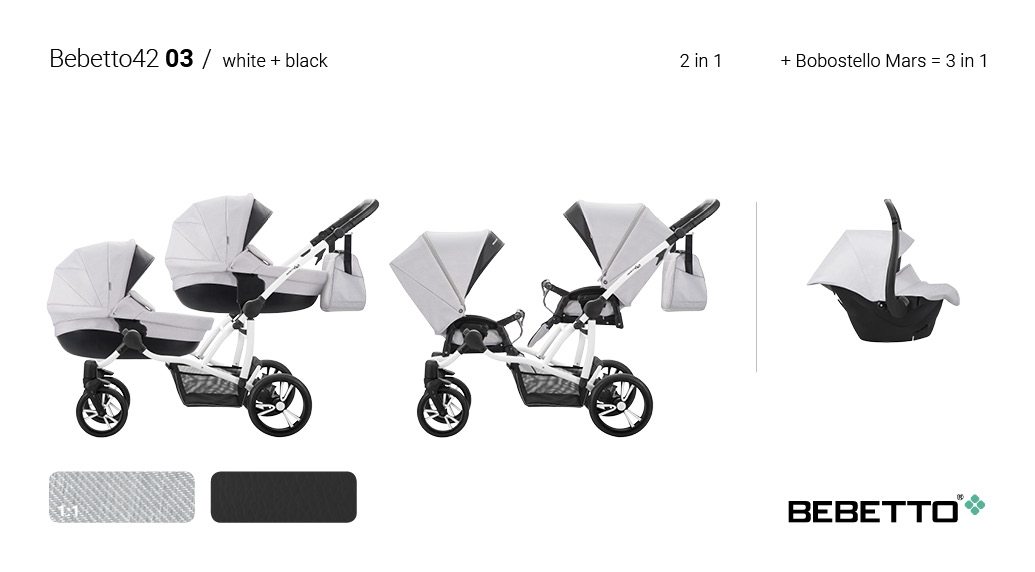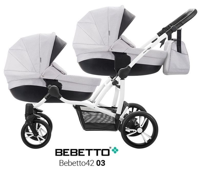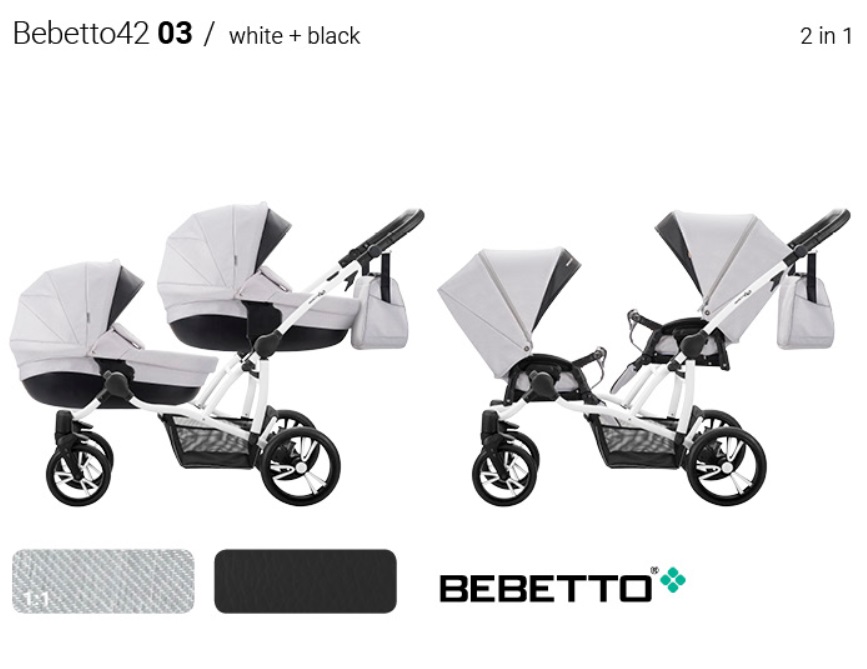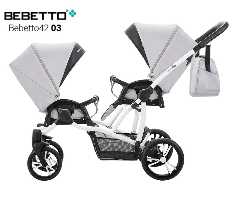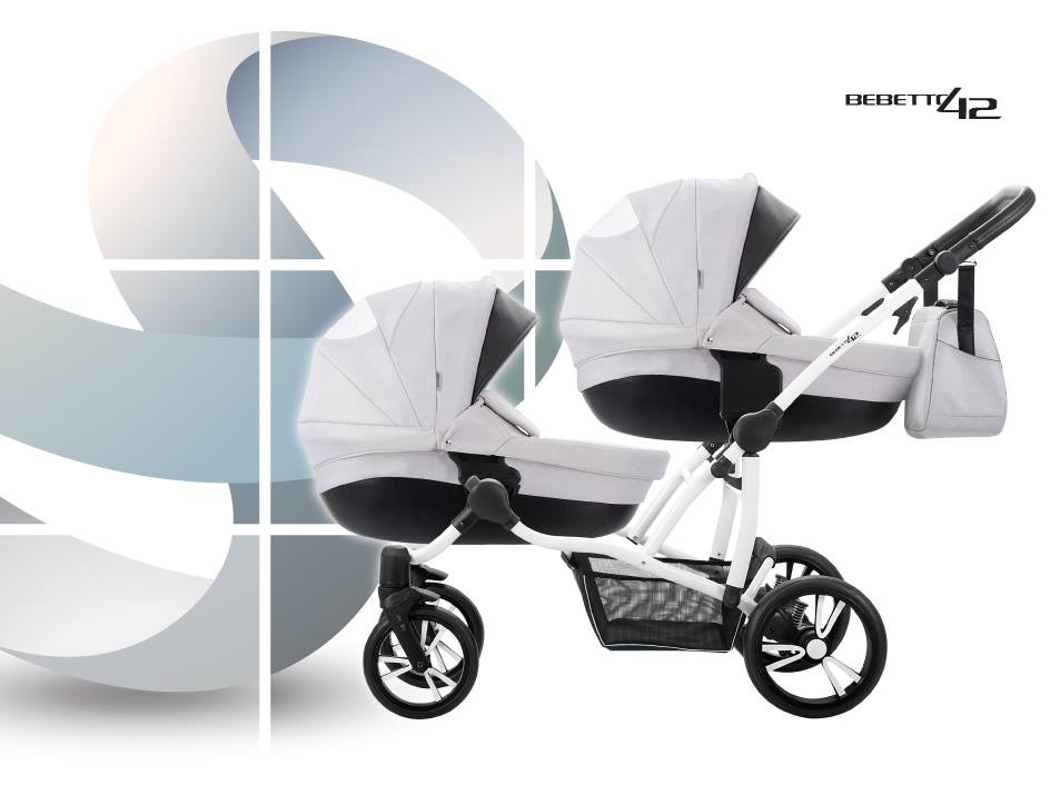 ბავშვის ეტლი Bebetto 42 2017 ტყუპებისთვის 2 in 1, შასი თეთრი / BIA, – 03