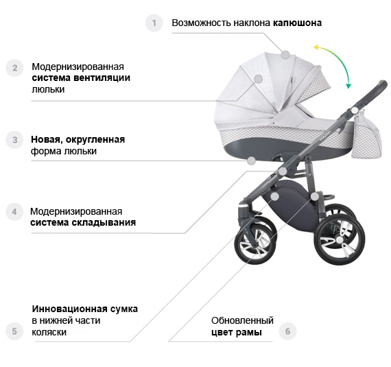 – საჭიროების შემთხვევაში, პოზიცია hood შეიძლება მორგებული, ისევე, როგორც მთლიანად იკეცება და ბავშვს სრული მიმოხილვა დროს ფეხით.