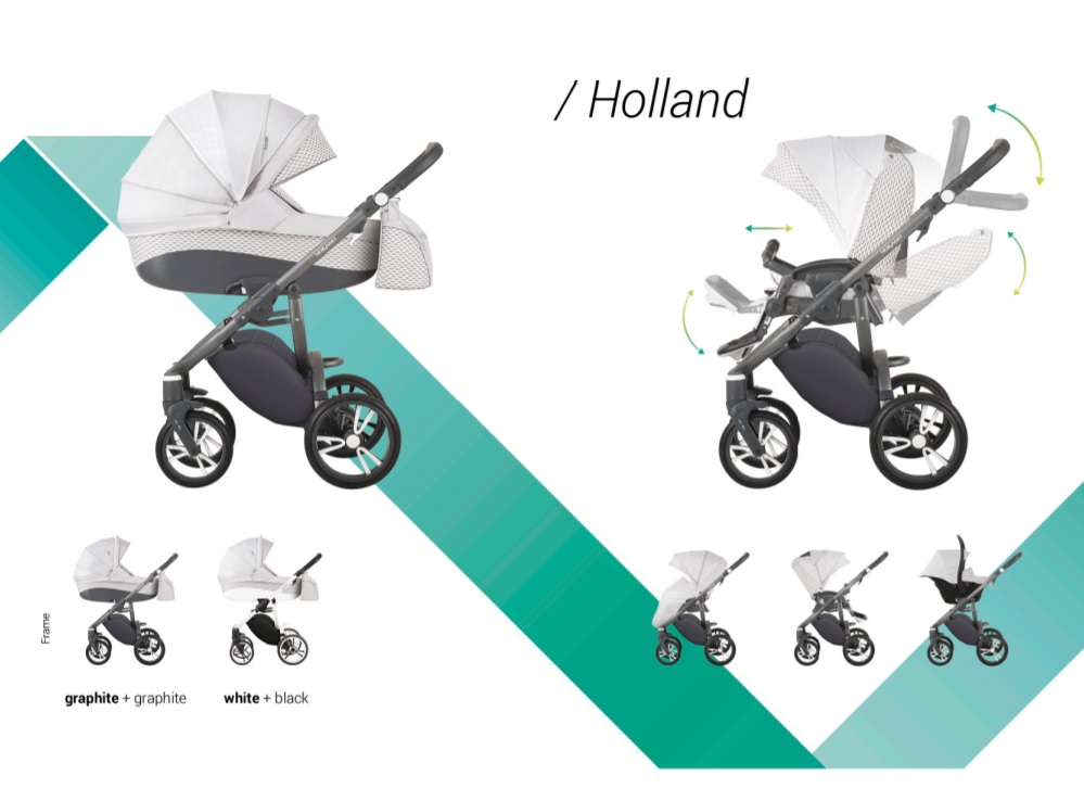 საბავშვო ეტლი Holland New 2 in 1 თეთრი შასის / Bia, ფერი – W45, Bebetto, WB170_W45