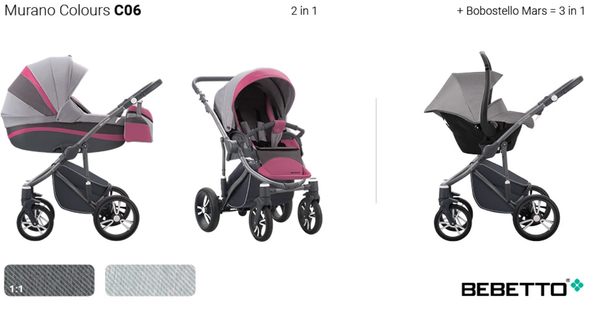 საბავშვო ეტლი Murano ფერები შასის 2 in 1 matt გრაფიტის / GRM C06, Bebetto, WB152_C06