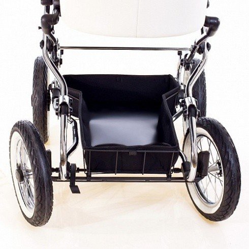 – ქვედა ნაწილი უზრუნველყოფილია რკინის სავაჭრო კალათა დამატებითი ჩანართით (ჯარიმა mesh) და სახელური დაფიქსირდა ელეგანტური ჩანთა for moms იმავე ფერის, როგორც stroller.