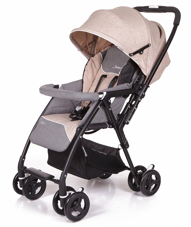 – ფერი დიზაინი stroller არის ღია კრემისფერი და ემატება დეკორატიული ნაქარგები ბრენდის.
