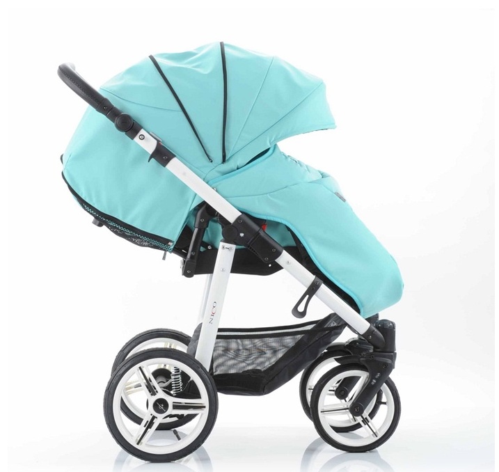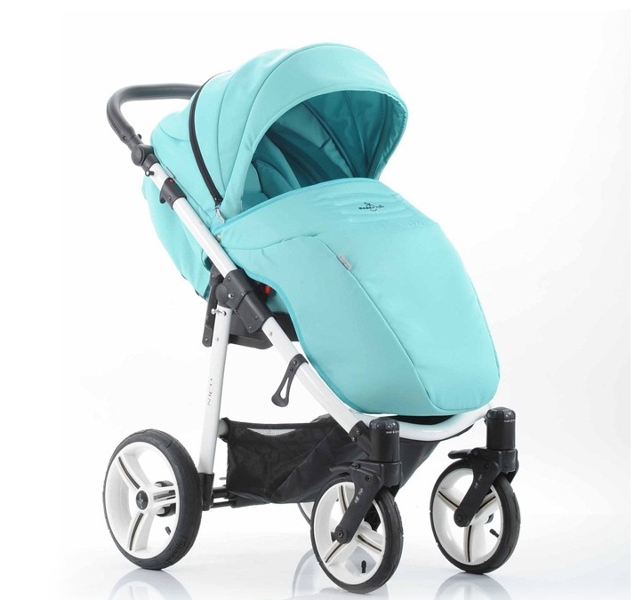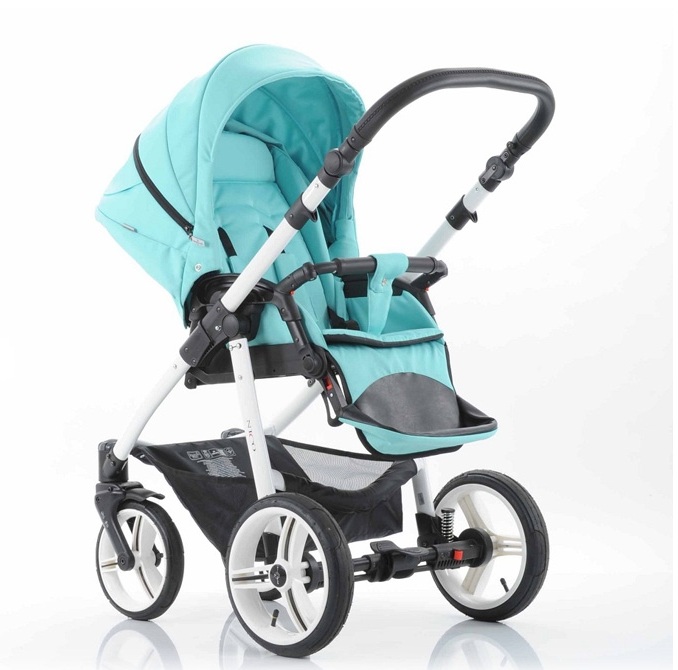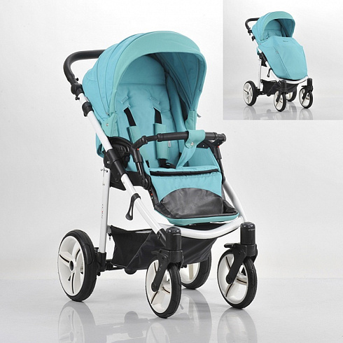 – Blue upholstery stroller «Nico» ჰარმონიული სახე თეთრი კარკასი.