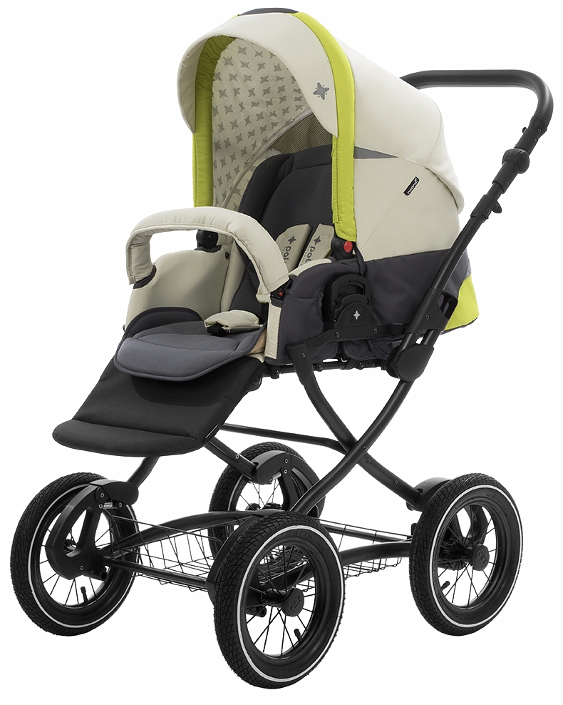ეს მოდელი აღჭურვილია კლასიკური შასის დასაკეც ტიპის დიდი cradles სავენტილაციო სისტემა ბოლოში, რეკრეაციული ერთეული ადვილი კორექტირებას საზურგე და footrests და მანქანის სავარძელი ჯგუფი 0+. პროდუქტს აქვს მიმზიდველი დიზაინი, სრული თეთრი და მწვანე ფერის პრაქტიკული ქსოვილზე.