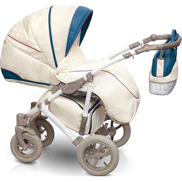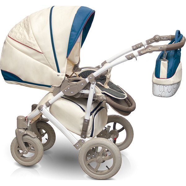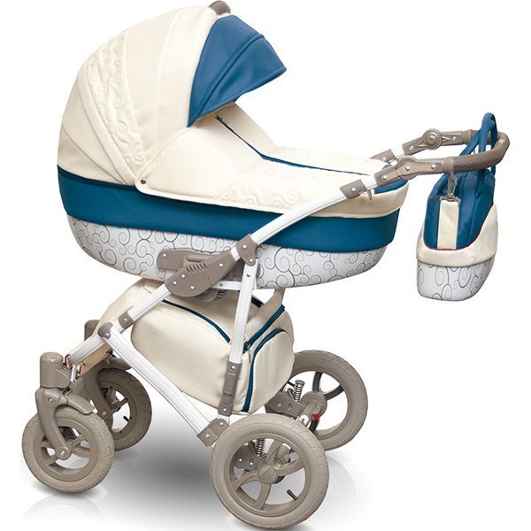 – ბავშვთა სატრანსპორტო გამოიყურება ელეგანტური. თეთრი პლასტმასის ქვედა გალიაში florid patterned, თეთრი შასი და ღია ყავისფერი დისკები და სახელური კომბინაცია შექმნან დახვეწილი beige ფირუზი upholstery.