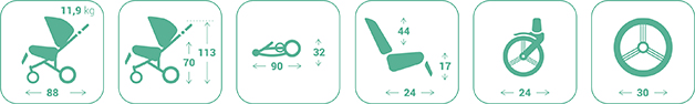 საბავშვო ეტლი ზომა: 112 x 61 x 92 სმ.