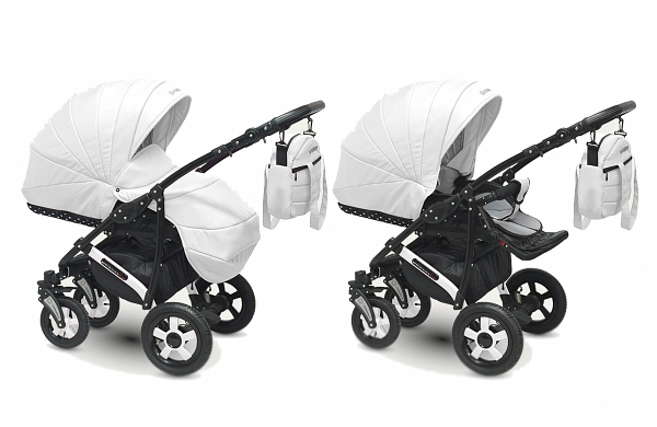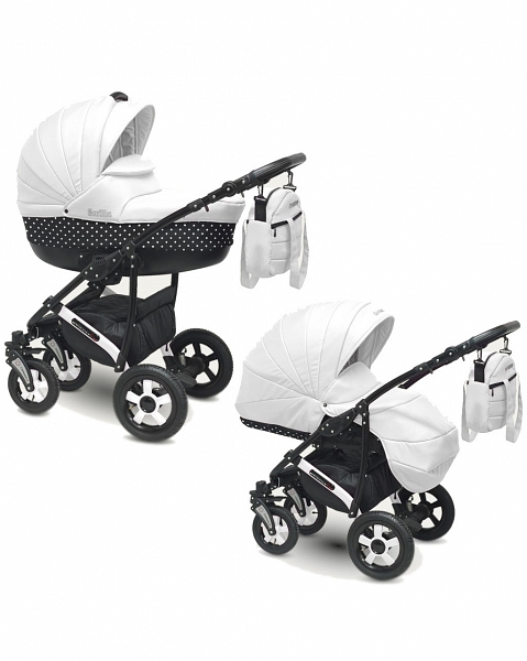 ბავშვის სასეირნო ეტლი 2 1 კამერლო Sevilla, თეთრი და შავი ბარდა