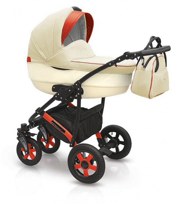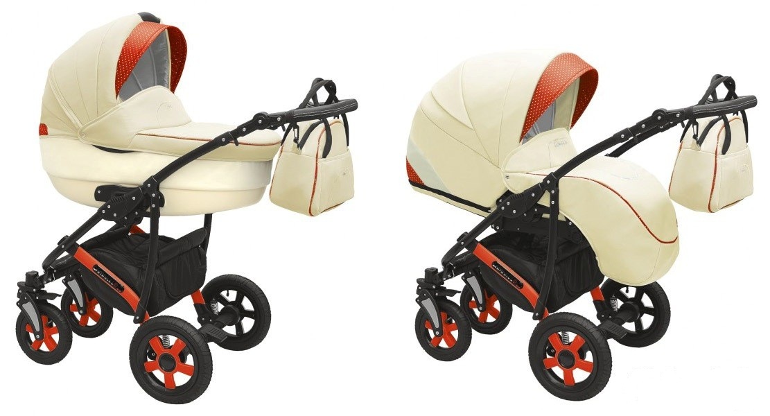 – დიზაინი stroller არის ელეგანტური და მიმზიდველი, შესრულებული კრემისფერი ფერი დეკორატიული ფორთოხალი აქცენტები, ჩარჩო არის მოხატული შავი.