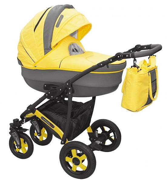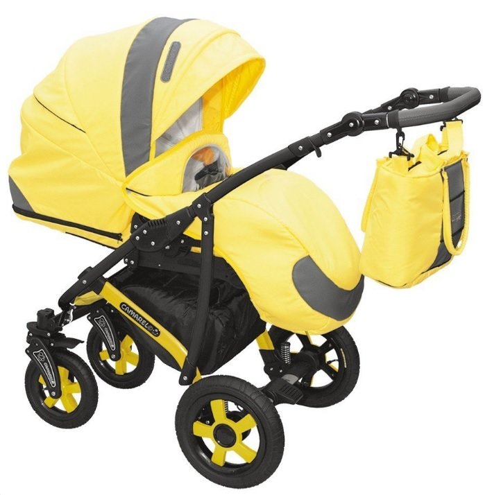 საბავშვო ეტლი Camarelo Carmela 2 1 შესრულებული ყვითელი ნაცრისფერი ფერის. ეს ელეგანტური მოდელი მიმზიდველი და ელეგანტური დიზაინი მობილური მშობლები. მსუბუქი და გამძლე ლითონის შასის ან აკვანში შეიძლება არა ნაკლებად კომფორტული სავარძელი ერთეული. Stroller ადვილია ჩამოყაროს კარტები, ასე რომ შეიძლება ტრანსპორტირება მანქანის საბარგულში.