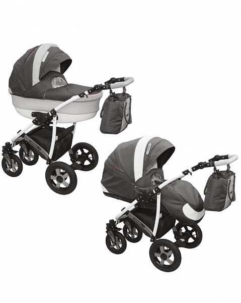 – დიზაინი stroller არის ელეგანტური და მიმზიდველი, სრული მუქი ნაცრისფერი.
