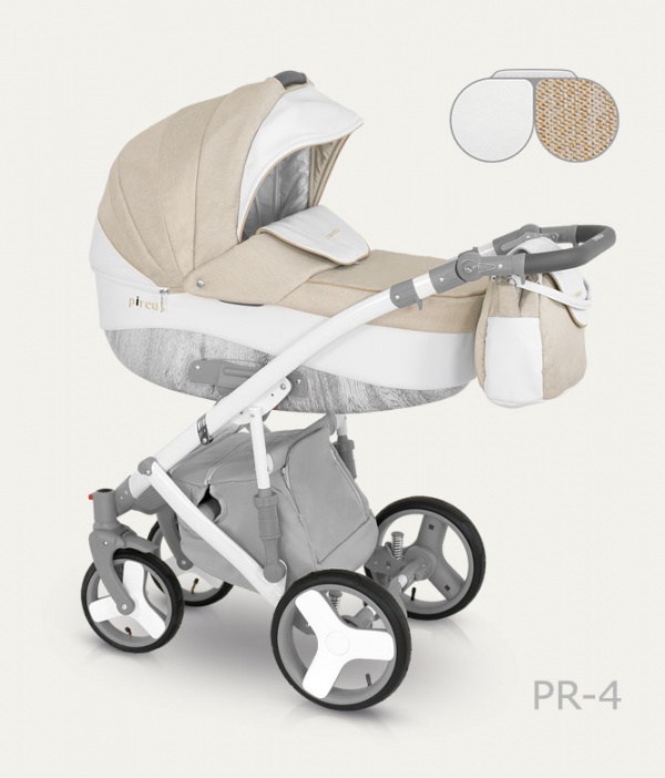 – დიზაინი stroller არის ელეგანტური და მიმზიდველი, შესრულებული კომბინაცია თეთრი და კრემისფერი.