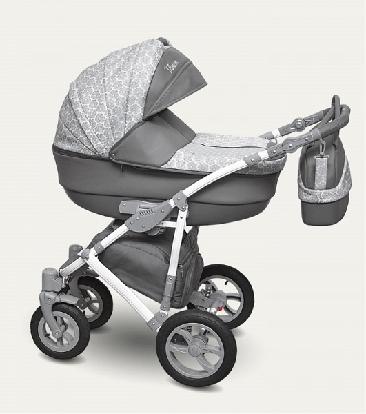 საბავშვო ეტლი «Vision 2 in 1″ ნაცრისფერი დეკორატიული ჩანართები ტექსტილის ყვავილებით ძალიან შთამბეჭდავი, ტექსტილის სასიამოვნო შეხება. Cradle ერთად მოსახერხებელი ტარების სახელურის და რბილი ბამბის padding შიგნით. Seat ერთეული გაფართოვდა სრული საწოლი ბავშვის.