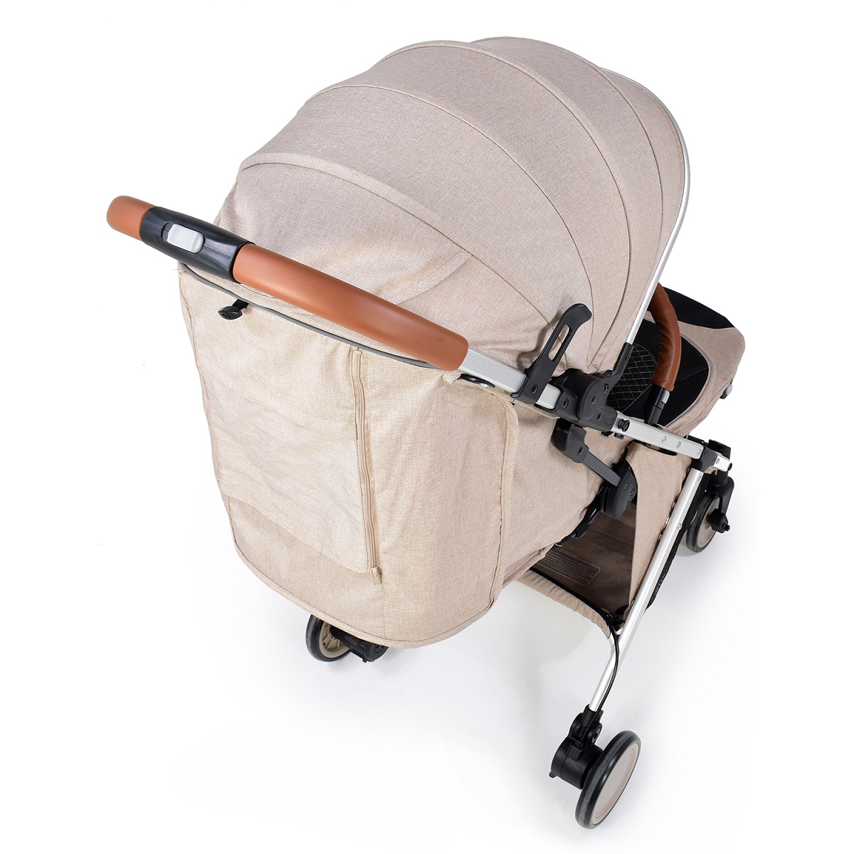 – Stroller საკმარისად მოქნილი, swing ტიპის წინა საჭე თავისუფლად როტაცია მეშვეობით 360 °, და გადაადგილების სწორი გზა შეიძლება გათვალისწინებული სარგებლობის დამჭერები.