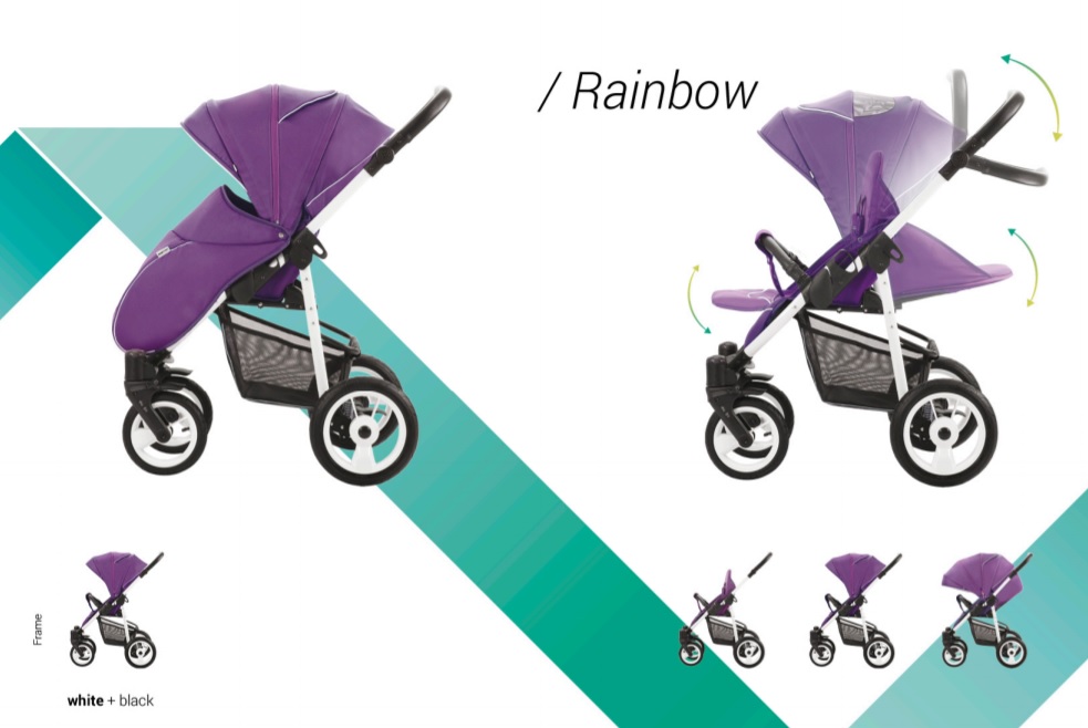 ბავშვის სასეირნო ეტლი Rainbow, შასი თეთრი / BIA, – 207
