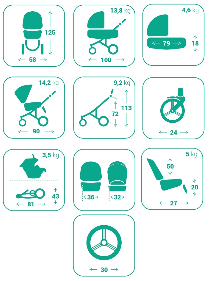 – ვაგონი 2 in 1 სრულად დატვირთული, ვიწრო შასის interchangeably დამონტაჟებული აკვანი ან ადგილს ერთეული კომპლექტი, შესაძლებელია დააყენოთ მანქანის სავარძელი (სურვილისამებრ).