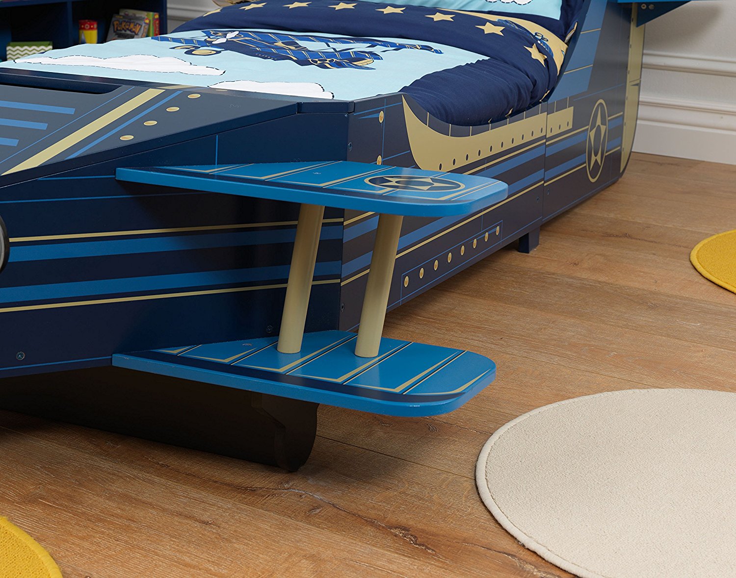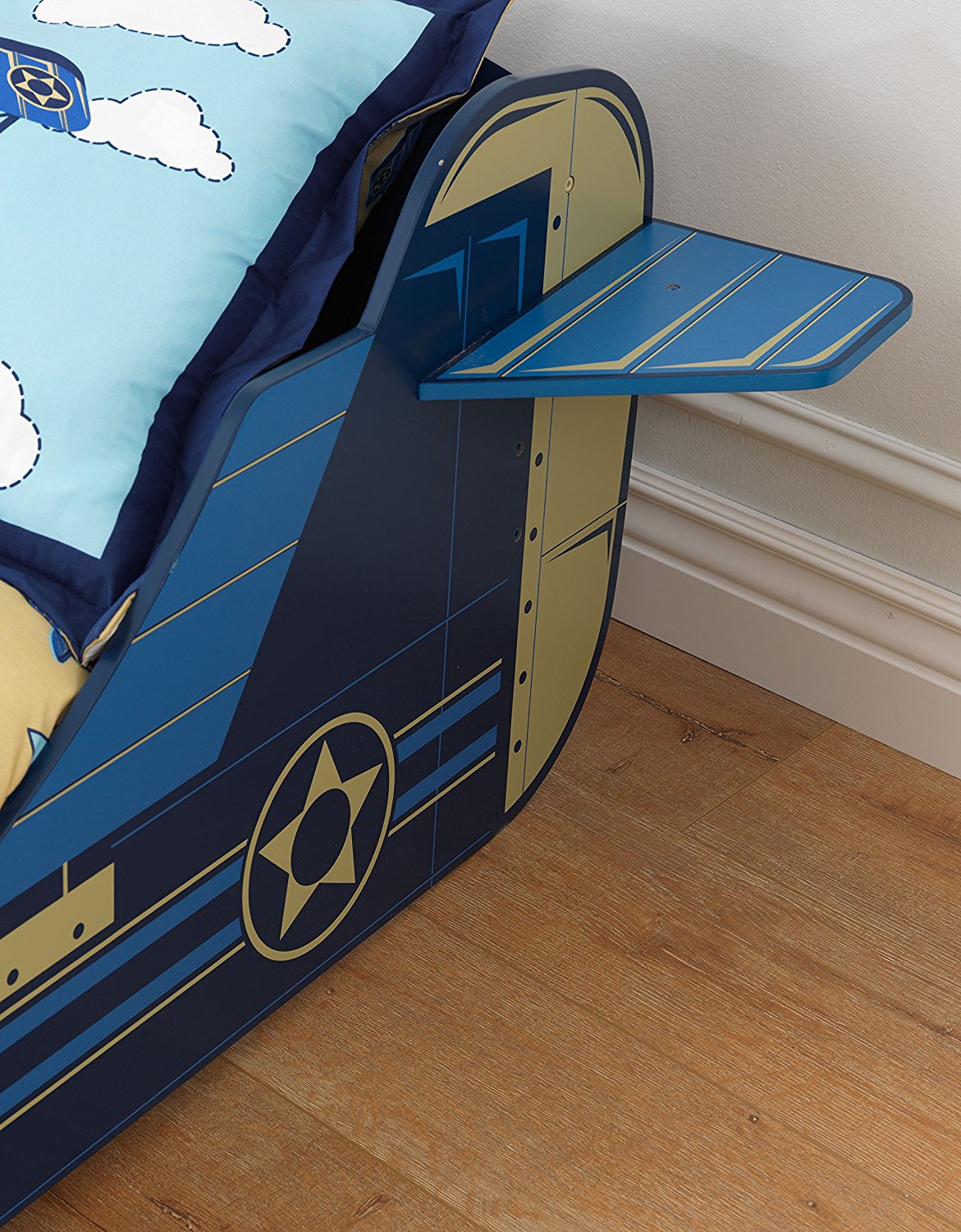 ბავშვის საწოლი თვითმფრინავი თეთრეულის ყუთით