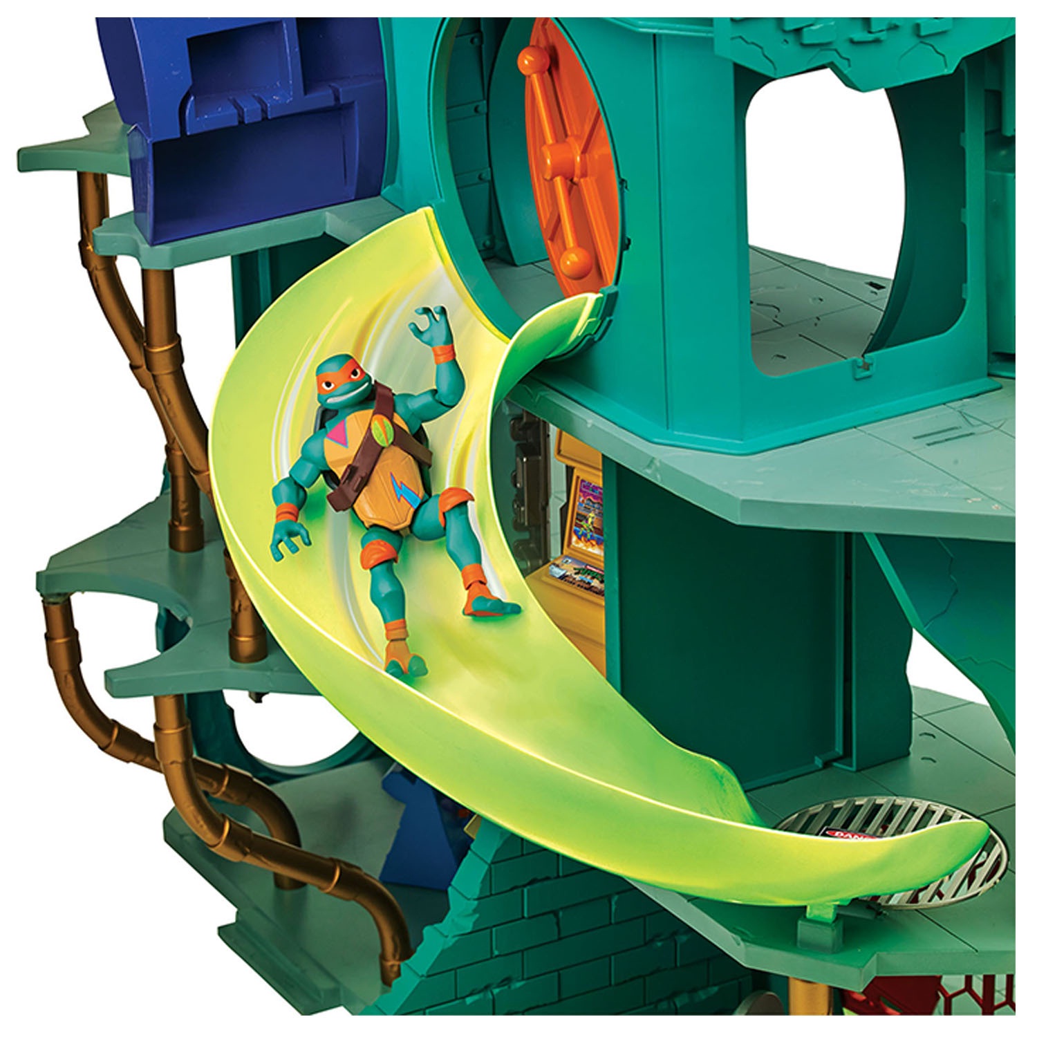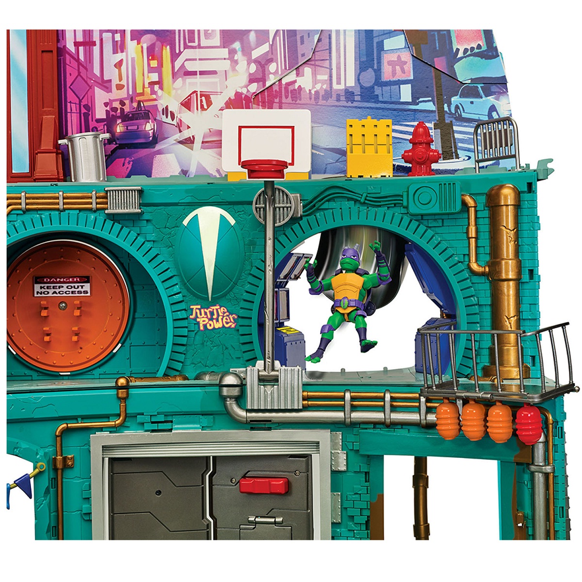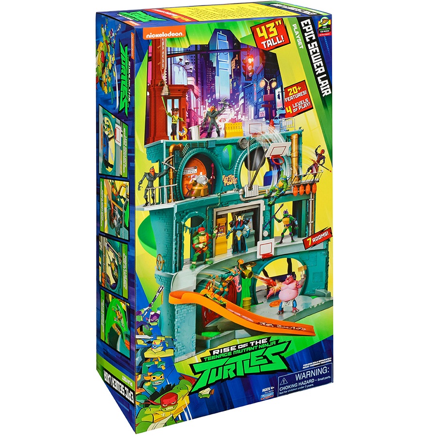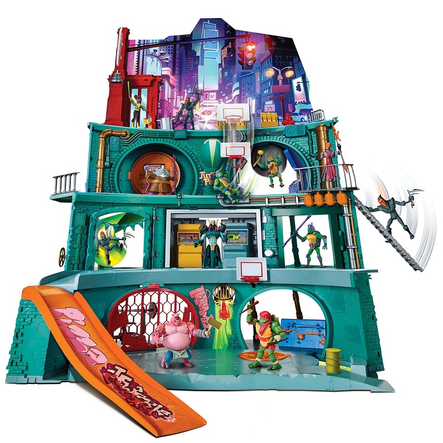 პოპულარული Ninja Turtles ანიმაციური სერიალის გულშემატკივრებმა იციან, რომ მათი საიდუმლო თავშესაფარი მანჰეტენის კანალიზაციაში მდებარეობს. კომპანია Turtles– ის შესანიშნავი თამაშის ნაკრების წყალობით, ბავშვი შეძლებს მას ხელახლა დაუკავშიროს ბაგა-ბაღში და მიიღოს მომხიბლავი ტური საყვარელი პერსონაჟების მრავალ დონის დენით.