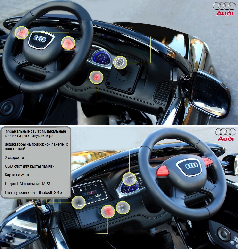 – მაღაზია ელექტრო მანქანა გამოიყურება ძალიან რეალისტური, ის იმყოფება ინსტრუმენტი პანელი, საჭე და პედლები. საჭე რადიო კონტროლის ღილაკები არიან ასევე ესწრებოდა USD სლოტი, და მეხსიერების ბარათი.