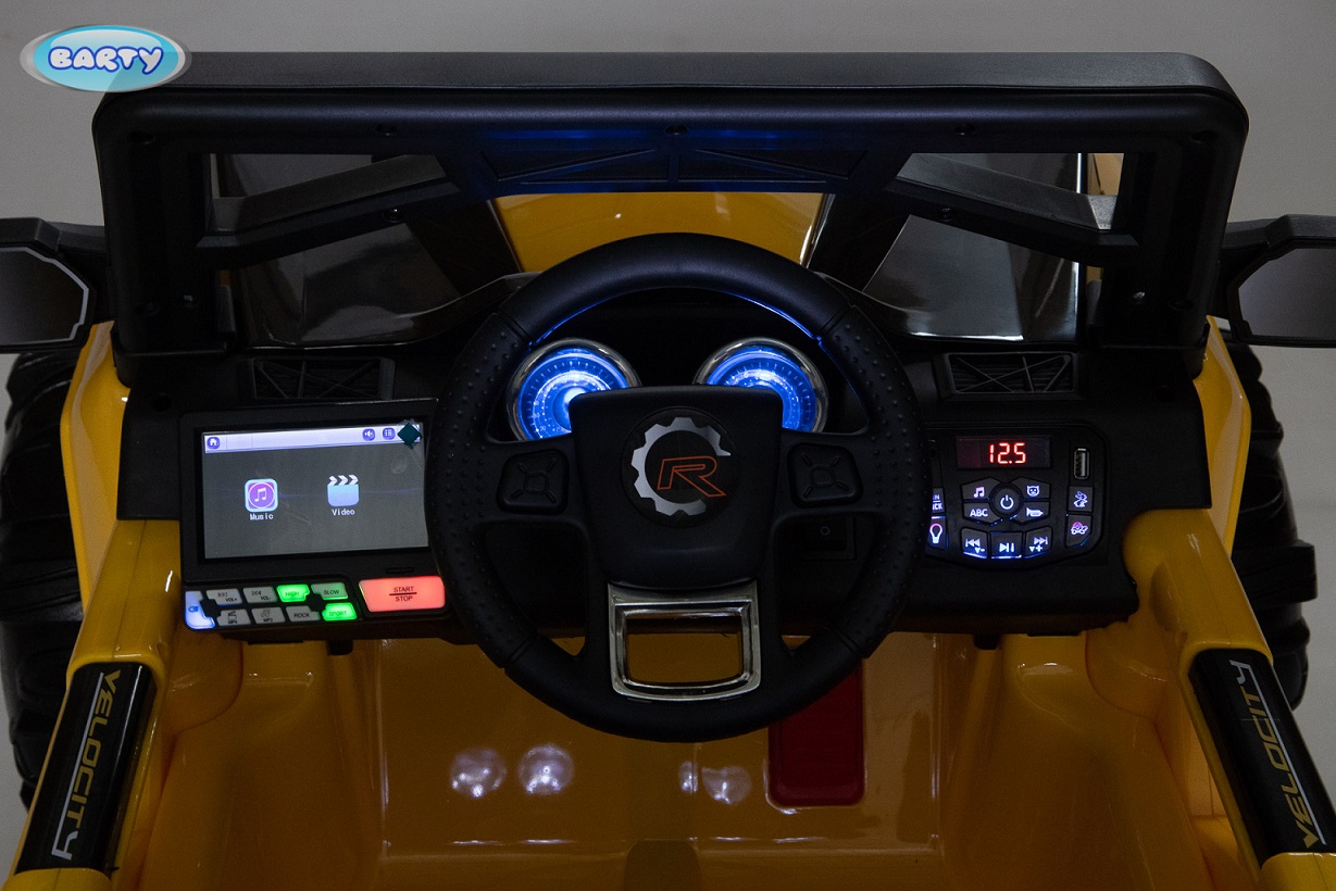 – ოთხი წამყვანი ელექტრო მანქანა იზიდავს ყურადღებას ბავშვების რეალისტური დიზაინი და დეტალური შესრულების, არსებობს კიდევ tachometer და speedometer დაფა.