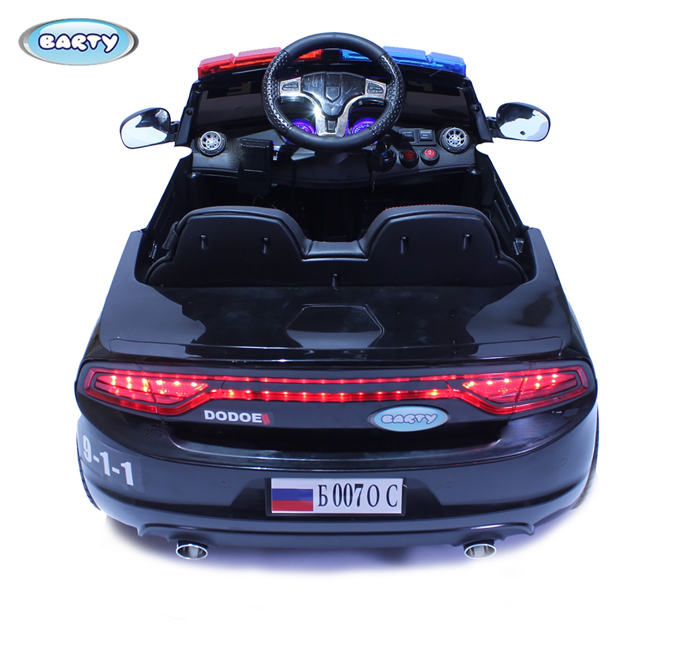 ბავშვები ელექტრო მანქანა Barty Dodge პოლიციის B007OS გააკეთა დიზაინი პოლიციის მანქანაში, ასე რომ საშუალებას მისცემს ბავშვს, რომ ცდილობენ როლი დამცველი კანონის უზენაესობა. ეს შეიძლება დაარბია 4 კმ / სთ. მოუსმინეთ მუსიკას დროს დევნა ან აცნობოს გამვლელებს რადიო-სპიკერი დევნა.