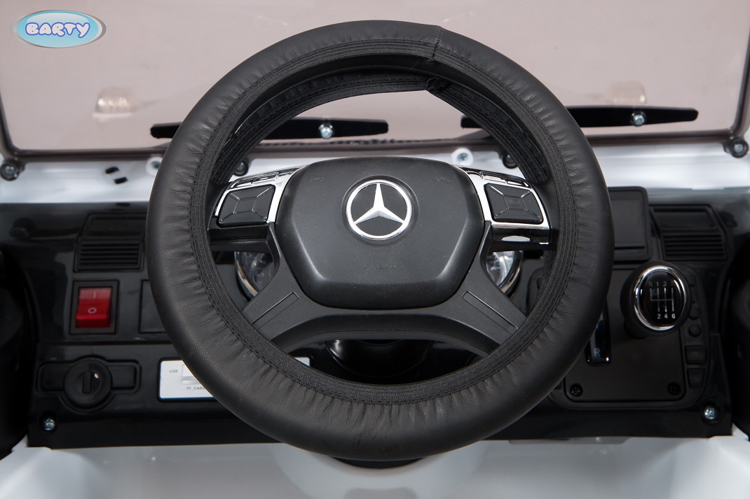 – ელექტრო მანქანა შექმნილ ანალოგიით Mercedes-Benz G63-AMG, ყურადღებას იქცევს ბავშვებს მათი რეალისტური დიზაინი და დეტალური შესრულების, არსებობს კიდევ სარკეები და ინსტრუმენტი პანელი განათება.