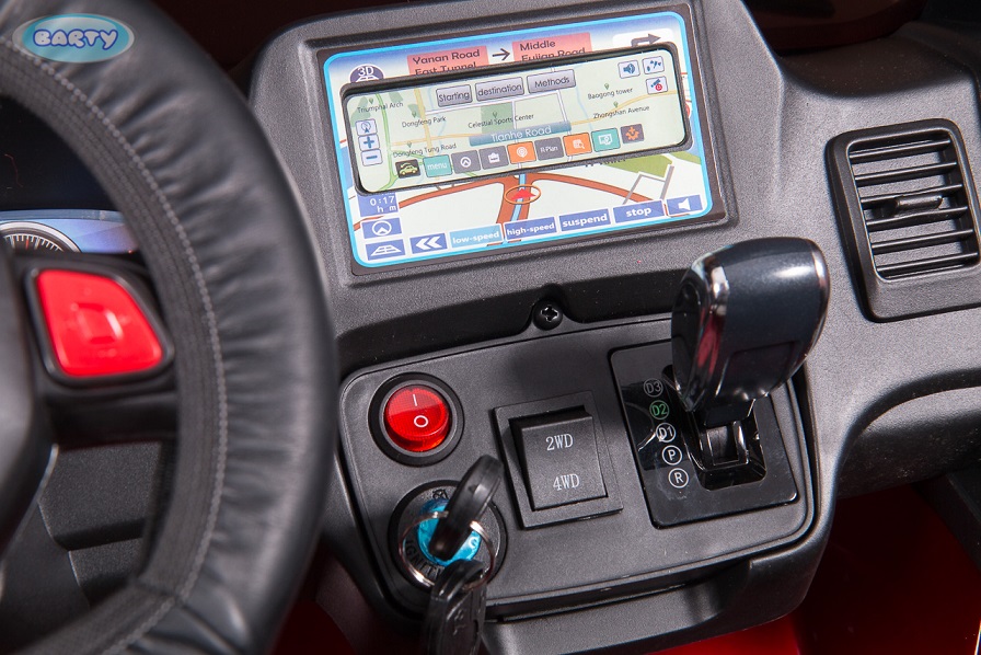 – შეგიძლიათ მიიღოთ შიგნით მეშვეობით ღია კარის სახელურები, დასაშლელად ბავშვის საჭიროა მხოლოდ დააჭიროთ pedal ერთად Antislip ზედაპირზე, და დაიწყოს ძრავა გასაღები.
