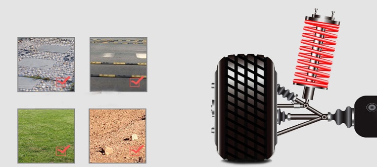 – გრძივი ამორტიზაციის 4 დისკები, როდესაც მართვის უზრუნველყოფს გლუვი აქცია მანქანა მეტი მუწუკები.