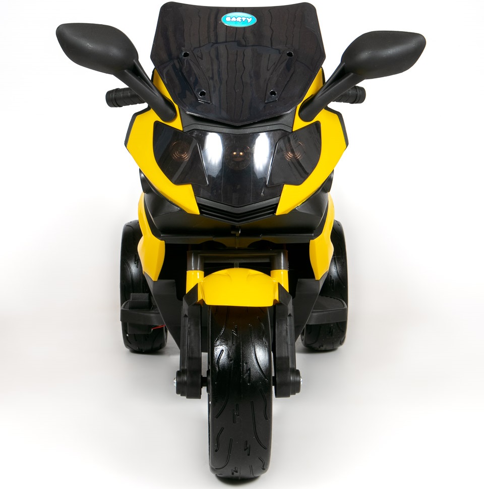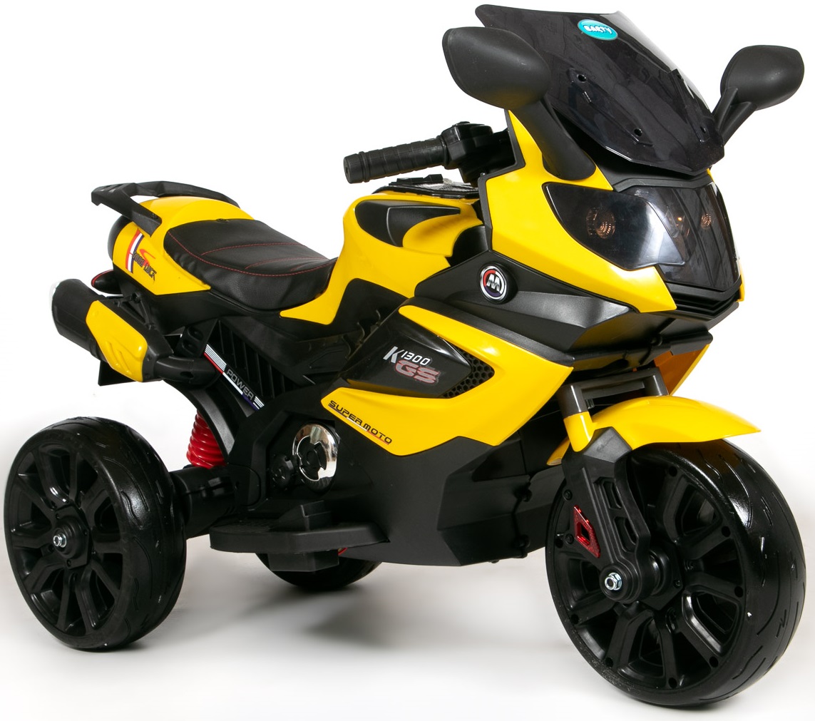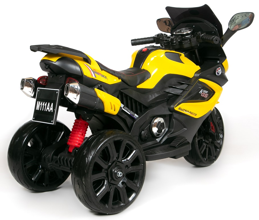 – სამბორბლიანი მოტოციკლი შთაბეჭდილებას მოახდენს ბავშვს თავისი თანამედროვე დიზაინით, შესრულებული ყვითელი და შავი შესანიშნავი სახეებით.