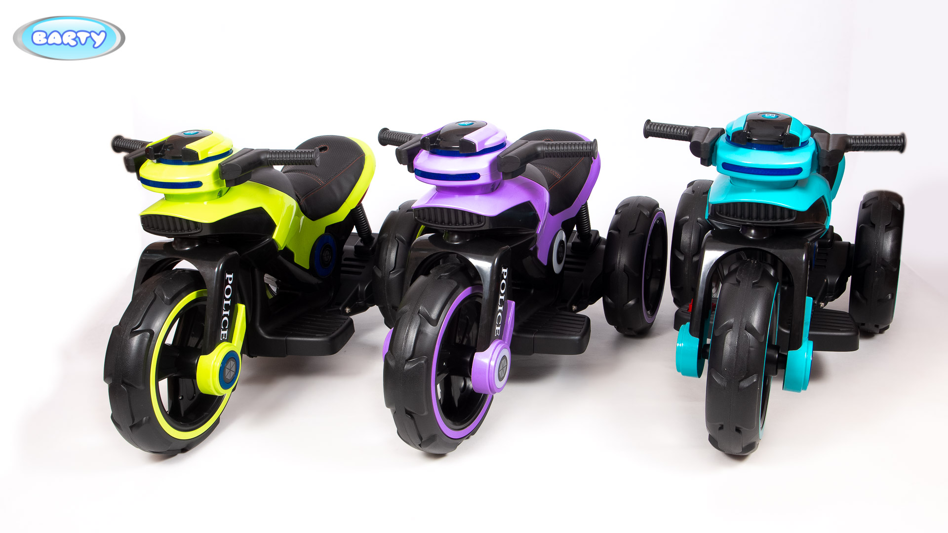 – Y- Maxi Police YM 198– სამ ბორბლიანი ელექტრო მოტოციკლი, რომელიც ბავშვის საყვარელ მანქანად იქცევა, ხელს შეუწყობს მისი საავტომობილო საქმიანობის განვითარებას და კონტროლის საფუძვლებს.