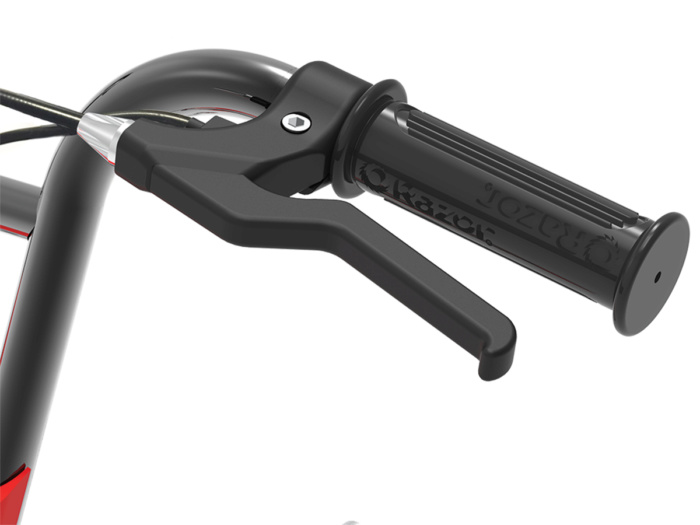 – დამუხრუჭებისთვის, ბავშვებს შეუძლიათ საჭის საჭეზე გამოიყენონ ბერკეტი, სადაც ასევე არის რუბრიზირებული საყრდენები საწინააღმდეგო ზოლებით და გვერდებზე შეზღუდვები.