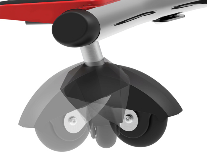– ველოსიპედის ჯვარედინი შესაძლებლობისთვის, პასუხისმგებელია სხვადასხვა ზომის პოლიურეთანის ბორბლები, რომელზეც ფრთები დაიცავს ბავშვს ყლორტებისა და ჭუჭყისგან.