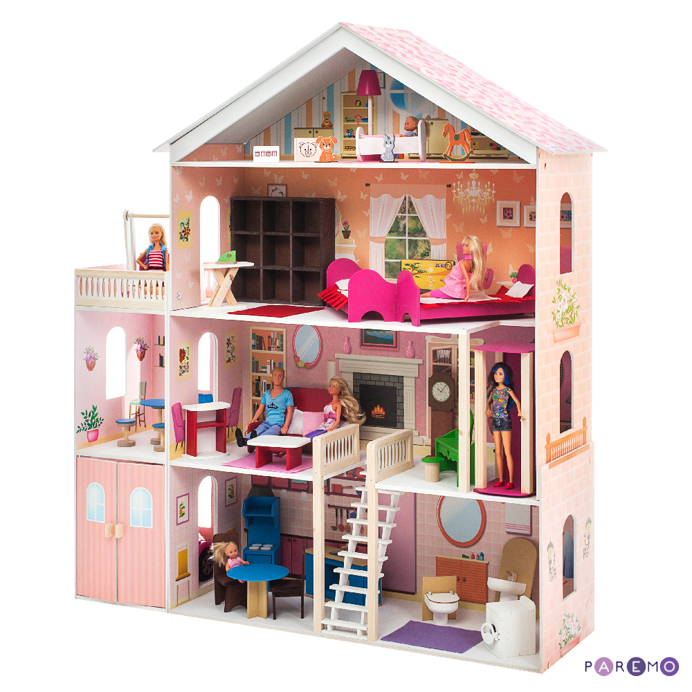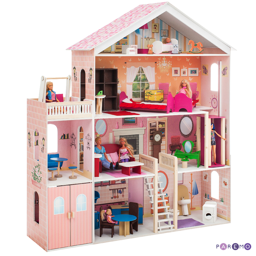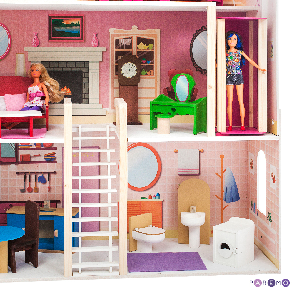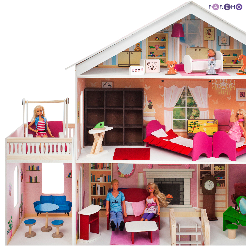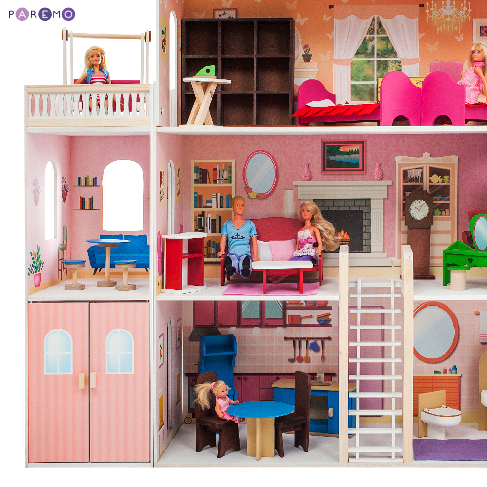 ყველა გოგო ოცნებობს თოჯინების სახლიზე და ისეთი დიდი, ლამაზი, ბუნებრივი ხისგან დამზადებული და კიდევ უფრო მეტიც. ეს მოდელი შესრულებულია ვარდისფერში, Barbie სტილში. სახლს აქვს 4 სართული ხის საწოლი და ლიფტი, ფართო ვერანდა და საქანელები დიდი აივნით. სახლს აქვს ყველა საჭირო ავეჯი საინტერესო თამაში თქვენს საყვარელ თოჯინებთან, არაუმეტეს 30 სანტიმეტრის სიმაღლეზე.