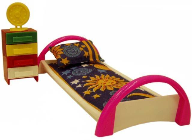 ავეჯის ეს ნაკრები საშუალებას მისცემს გოგონებს საძინებელი ოთახი წარუდგინონ საყვარელ თოჯინას. ნაკრები წარმოდგენილია ერთჯერადი საწოლით, რომელსაც აქვს ნახევარწრიული თავსაფარი, ლეიბებით, ბალიშებით და საწოლის მაგიდაზე, მრავალფუნქციური უჯრით. საწოლის მაგიდაზე არის საათის იმიტაცია ისე, რომ თოჯინა საბავშვო ბაღში არ დაიძინოს. ნაკრები გააფართოვებს როლური თამაშების შესაძლებლობებს თოჯინებით.