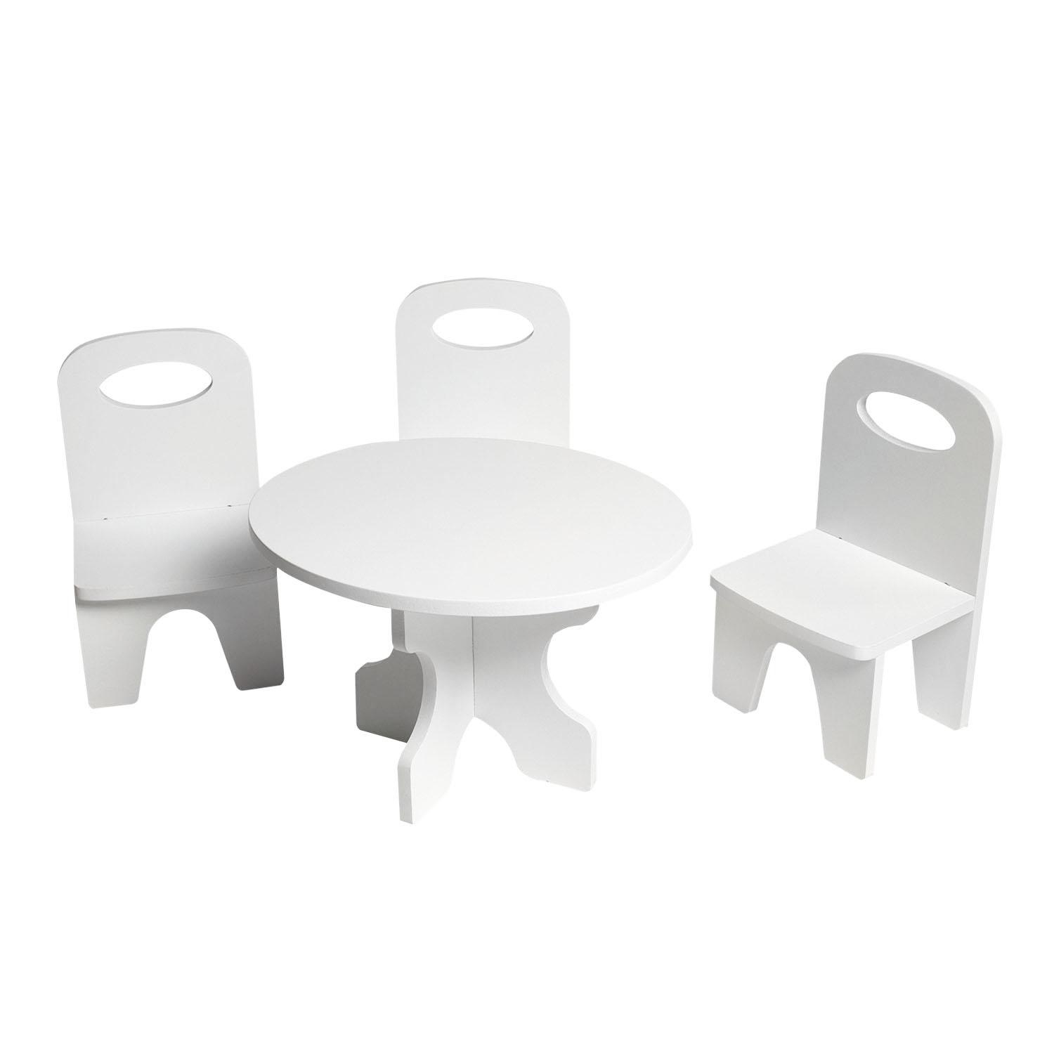 ავეჯის კომპლექტი თოჯინებისთვის – კლასიკური, მაგიდა და სკამები, თეთრი