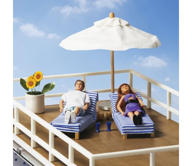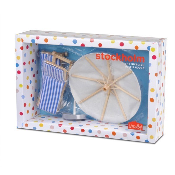 იმისათვის, რომ თქვენი თოჯინები მზის აბაზანებით ისარგებლონ, მათ დასჭირდებათ ავეჯი ამ ნაკრებიდან Lundby- დან. მას აქვს ორი მზისა და ქოლგა ულტრაიისფერი გამოსხივებისგან თავის დასაცავად განსაკუთრებით ცხელ დღეებში.