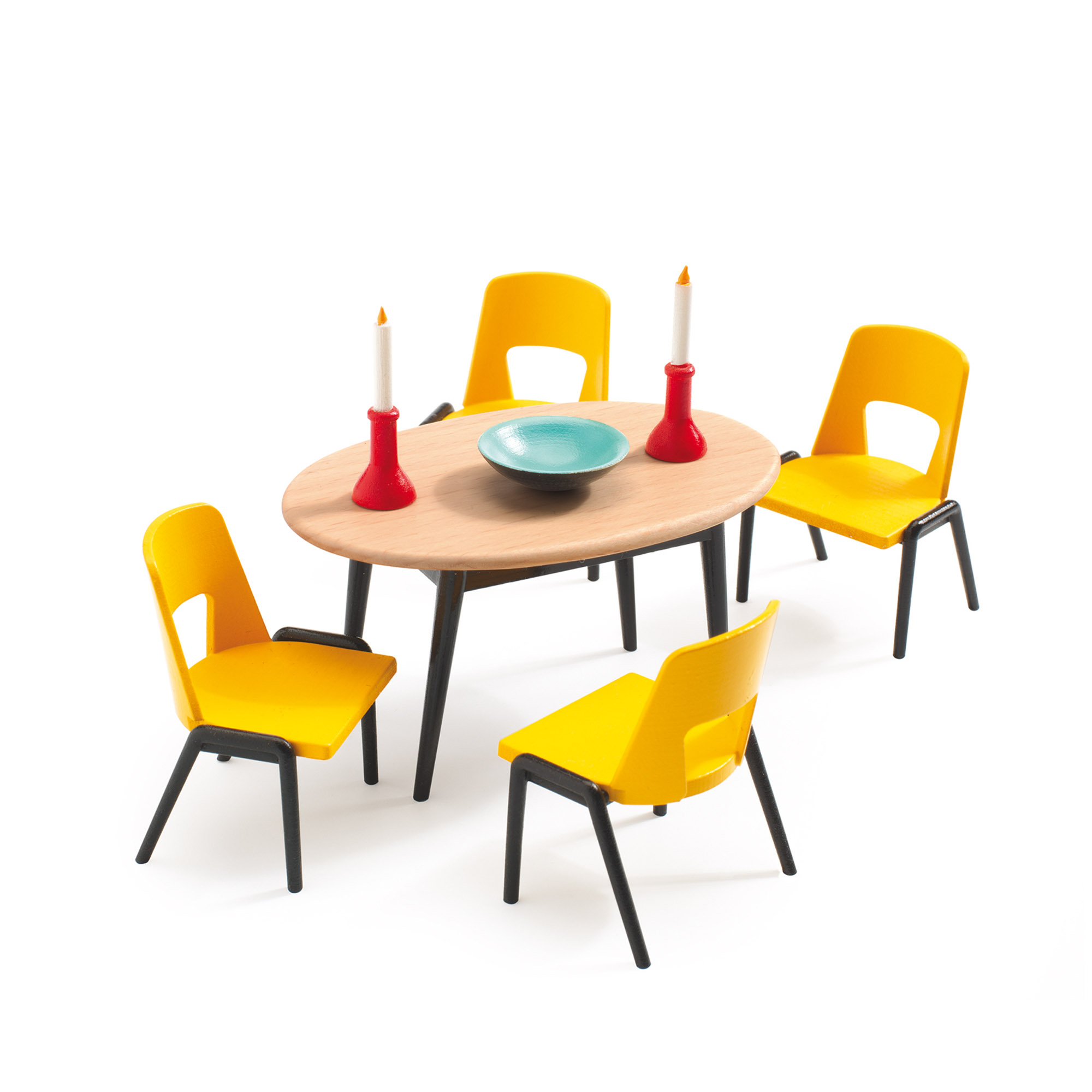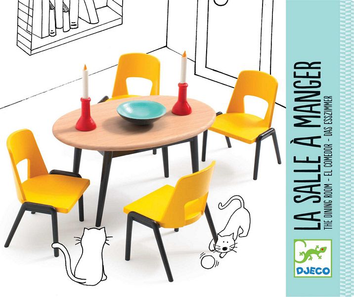 ლამაზი თოჯინების ავეჯი საშუალებას გაძლევთ შექმნათ თანამედროვე ინტერიერი თქვენი საყვარელი თოჯინებისთვის. ლამაზი სასადილო ოთახი მოწმობს სიმძიმისა და კომფორტისთვის ნებისმიერ სახლში. თოჯინების სახლის სასადილო ჯგუფი ფრანგული ბრენდის Djeco- ს საშუალებით, საშუალებას აძლევს მთელ თოჯინების ოჯახს ლამაზად მორთულ მაგიდასთან დასხდნენ.