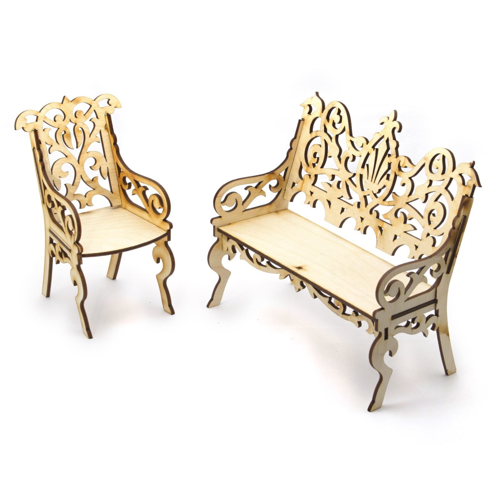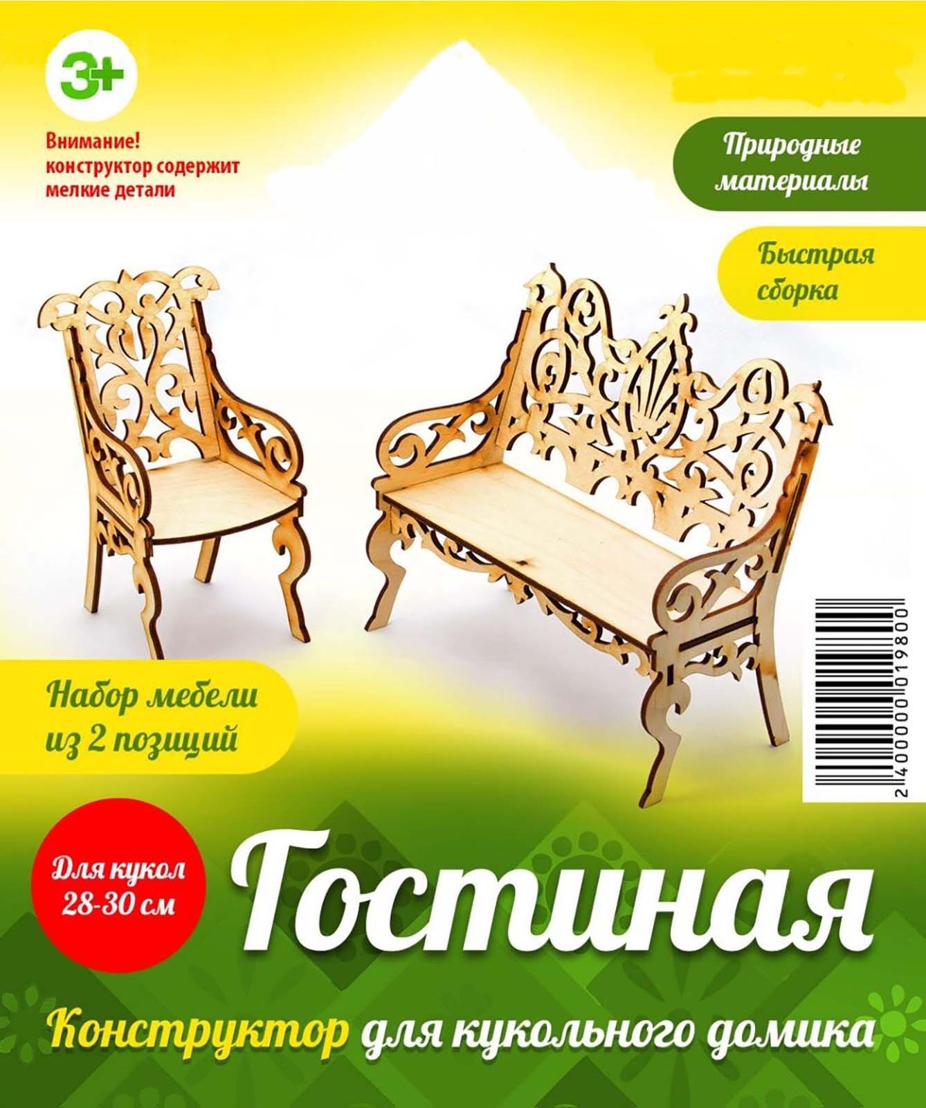 В гостиной, предназначенной для игры с куклами, появятся новый диван и кресло, если вы побалуете свою дочку таким своеобразным деревянным конструктором. Она сможет самостоятельно собрать предложенную мебель, чтобы потом усадить на нее свою куклу.