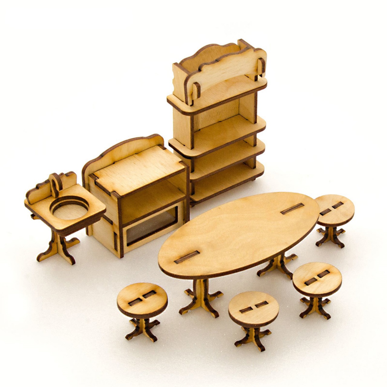 თოჯინის სახლის ასაწყობი ხის მოდელი – სამზარეულო, 8 პოზიცია, ტერემოკი, KM-4sim.