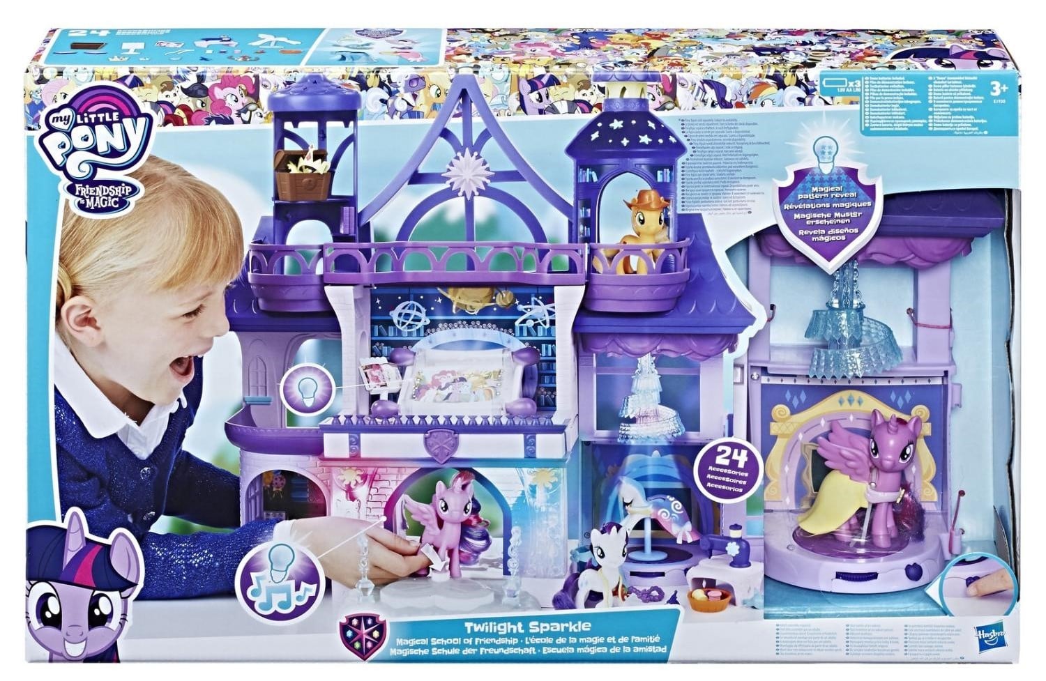 შედის: მეგობრობის სკოლა, Twilight Sparkle ფიგურა, თამაშის აქსესუარები.