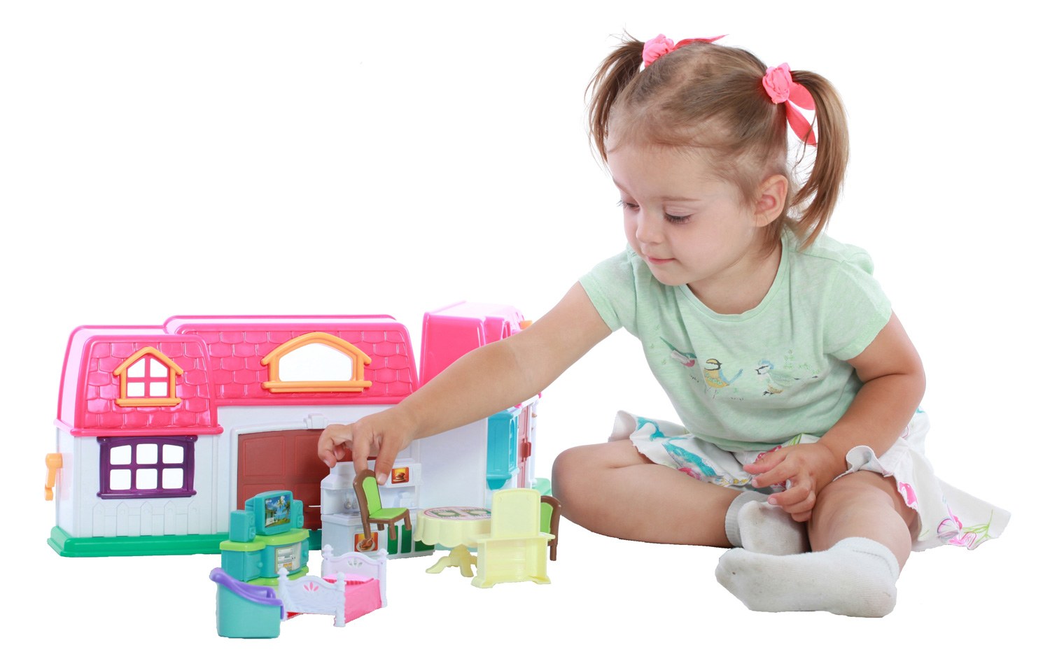 ახლა ასეთი ნათელი და ფუნქციონალური სახლი გამოჩნდება გოგონების ოთახში. უფრო მეტიც, ჩვილებს შეეძლებათ საკუთარი შინაგან ინტერიერით მოაწყონ თამაშის აქსესუარები ავეჯის სახით მათი გემოვნებით. ამის შემდეგ შეგიძლიათ დაუყოვნებლივ დაიწყოთ ყველაზე საინტერესო სიუჟეტი და როლური თამაში, რადგან ნაკრები მოიცავს სახლში მაცხოვრებლების ფიგურებს, რომლებიც გარეგნულად ლამაზი გოგოსა და ბიჭის მოგონებაა. ამ მღელვარე გართობის პროცესში ბავშვებს შეეძლებათ განავითარონ თავიანთი წარმოსახვა და წარმოსახვითი აზროვნება, ასევე გააუმჯობესონ თავიანთი ხელების მშვენიერი საავტომობილო უნარები ნაკრების მინიატურულ ელემენტებთან თამაშის დროს.