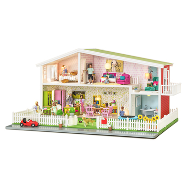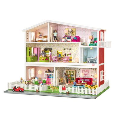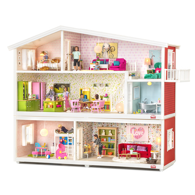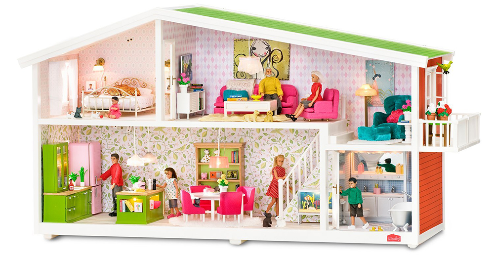 თითოეული გოგონა აღფრთოვანებული იქნება Premium Dollhouse- დან ლუნდაბიდან. გარეთ, ის თანამედროვე სამკუთხედს ჰგავს სამკუთხა სახურავით და კედლებით, რომელიც გაფორმებულია წითელი siding. და შიგნით არის სივრცე ოთახი, სადაც საყვარელ თოჯინებს თამაშობენ, რომელთა გოგონებსაც შეუძლიათ მოაწყონ და მყუდრო გახადონ.
