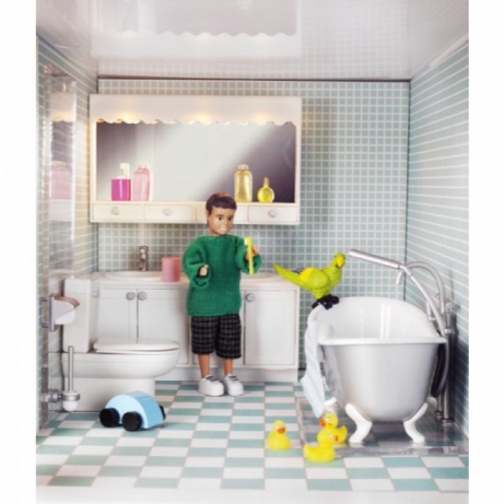 Lundby ბრენდის აბაზანის ნაკრები მოიცავს ყველაფერს, რაც გჭირდებათ მთელი ოჯახის კომფორტისთვის. ამ ნაკრებით, თოჯინა სახლი გადაიქცევა ფუფუნებულ ბინებად. საყვარელი თოჯინა, როგორც ნებისმიერი ნამდვილი ქალბატონი, ყოველთვის გამოიყურება სისუფთავე.