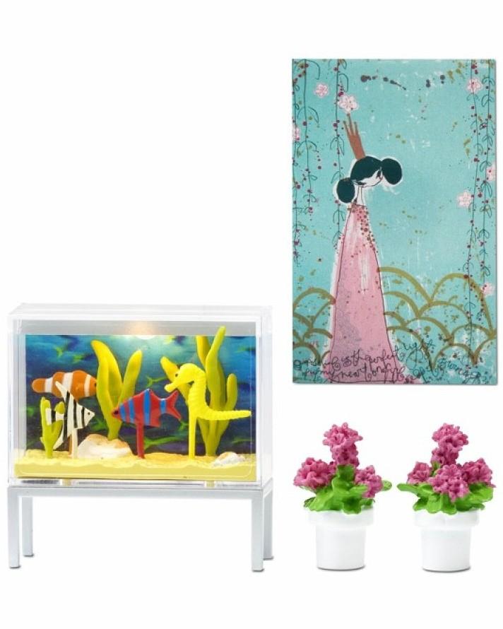 – თქვენი ქალიშვილის საყვარელი თოჯინა ახლა უკვე არა მხოლოდ ლამაზი თოჯინების სახლი იქნება, არამედ მყუდროც, რადგან მის ოთახებს აავსებენ აკვარიუმი თევზით, ცნობილი მხატვრის ლიზა რინევუოს სურათი და ქოთნები ნათელი ყვავილებით.