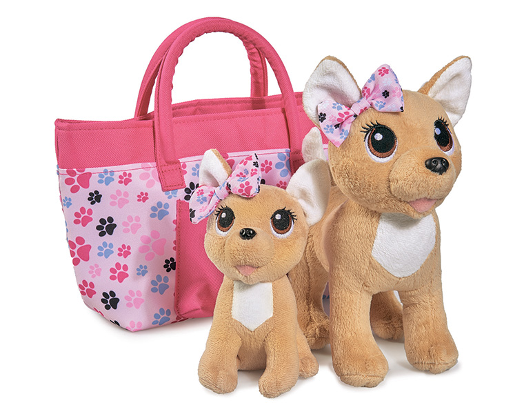 პლუშური ძაღლი Chi-Chi love – ბედნიერი ოჯახი, 2 ძაღლი ჩანთაში, 20 და 14 სმ