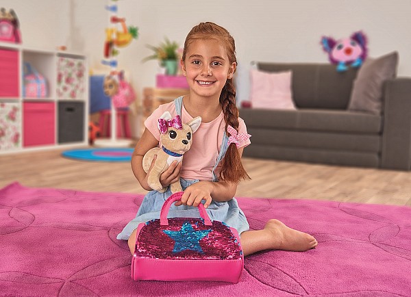 პლუშური ძაღლი Chi-Chi love – ბრწყინვალე მოდა, ხელჩანთით, 20 სმ, Simba, 5893351
