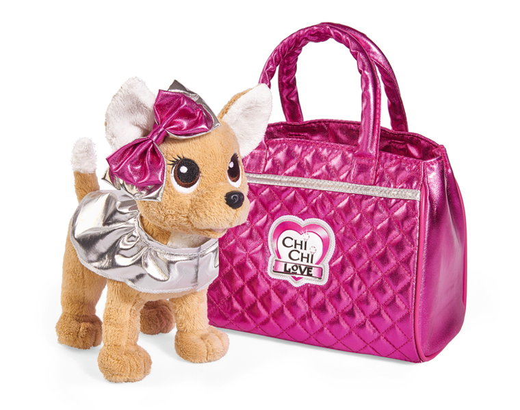 Chi-Chi love ძაღლთან ერთად – ჩიუჰაუასთან ერთად შეგიძლიათ წახვიდეთ სასეირნოდ ან წვეულებაზე. მომხიბლავი კრემის ფერის ძაღლი ნათელი ვერცხლისფერი სამოსით და ვარდისფერი-ვერცხლის მშვილდით გამოიყურება ძალიან ელეგანტური, ხოლო მისი ტარება ძალიან მოსახერხებელია მოდურ ვარდისფერ ჩანთაში.