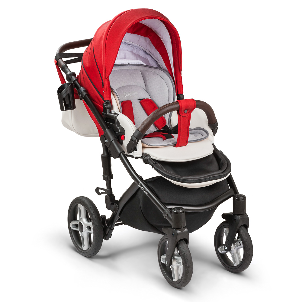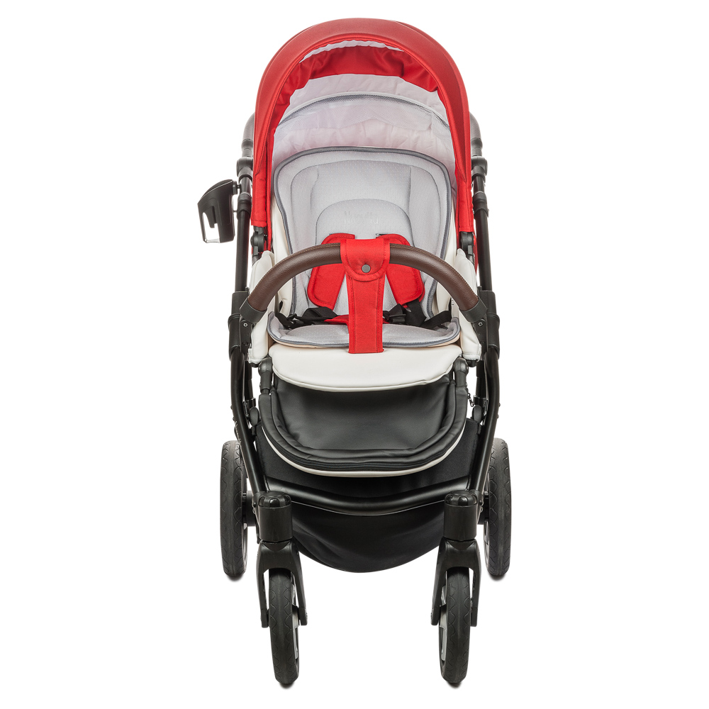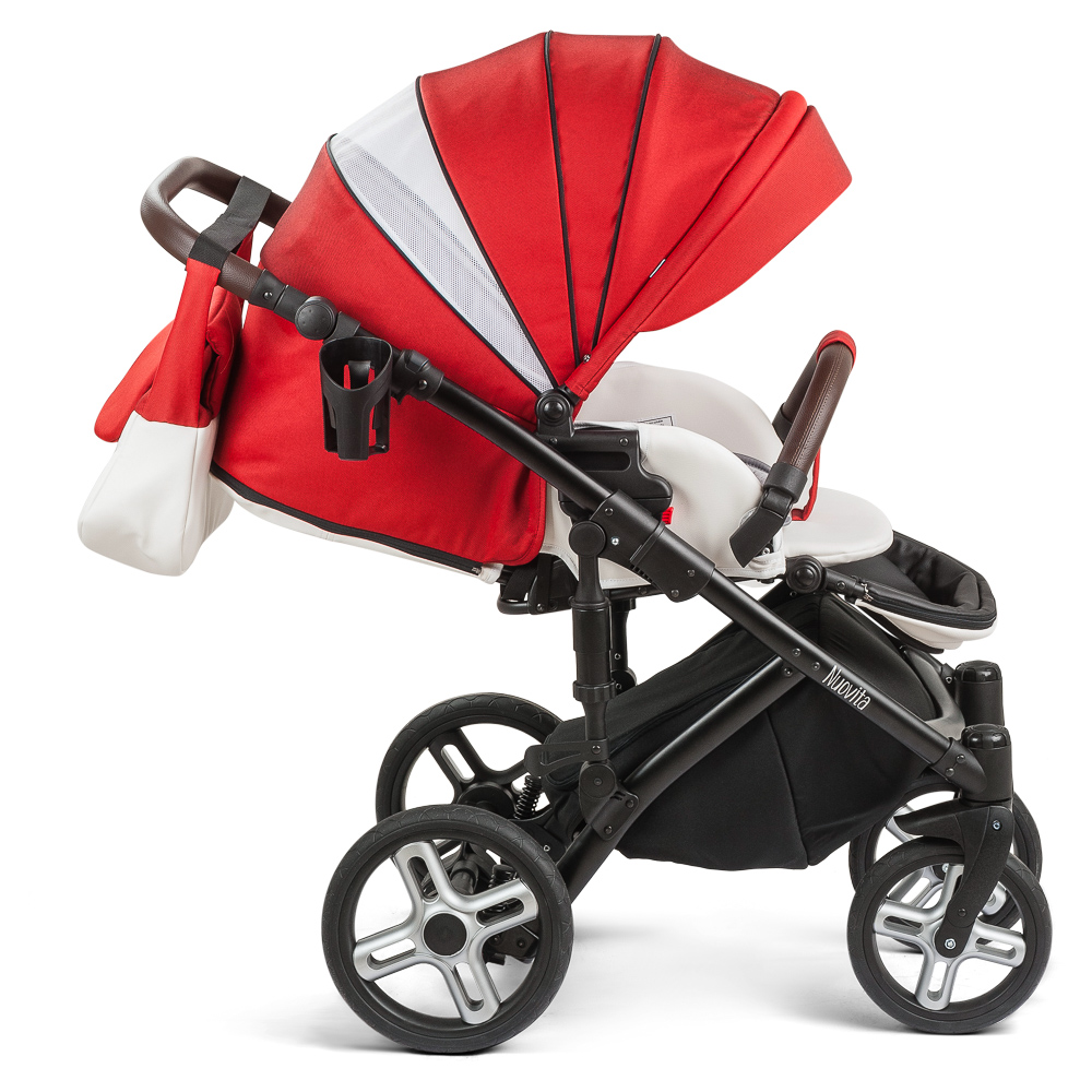 ეტლი Nuovita Carro სპორტი 2 in 1 არის თანამედროვე და მიმზიდველი დიზაინი, შესრულებული წითელი და შავი. შასი აღჭურვილია სპორტული ტიპის სილიციუმის tubeless დისკები და ორმაგი ბიძგების სისტემა, რომელიც უზრუნველყოფს ყველაზე რბილი ინსულტის მოდელი.