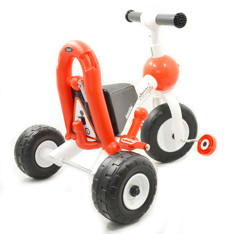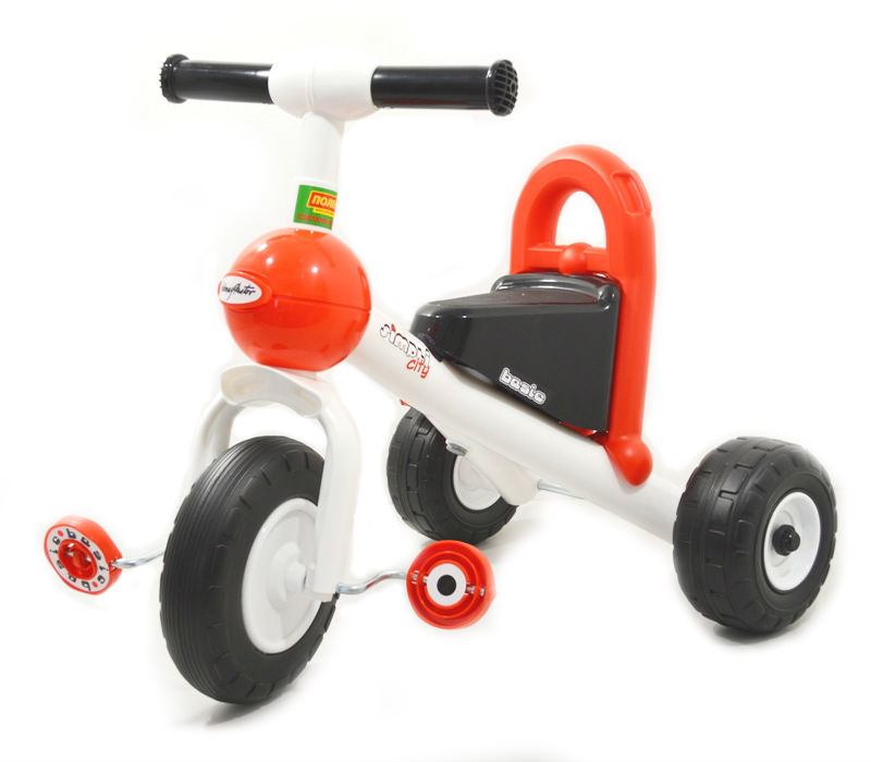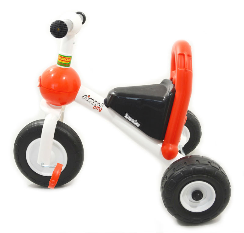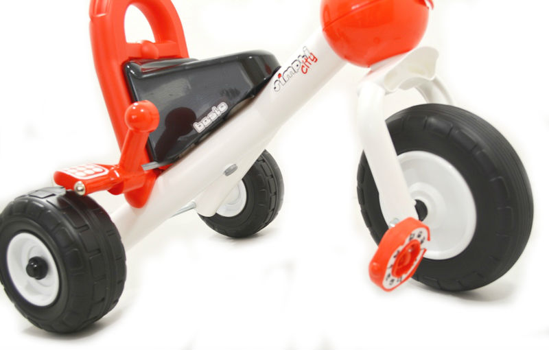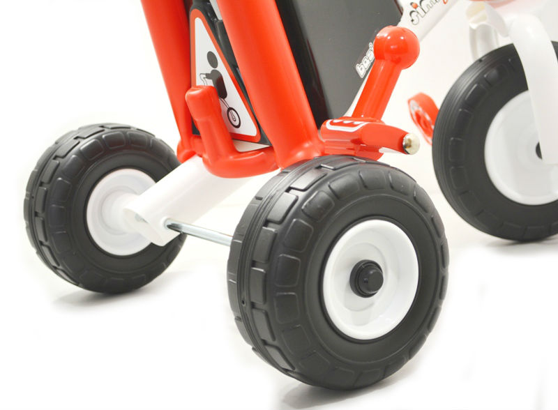 – ტრიციკლი, მისი ყველა ბორბალი დამზადებულია პლასტმასისგან. წინა ბორბლს აქვს ზომა 18 x 4.5 სმ, ხოლო უკანა ბორბლები მზადდება თითოეული 16 x 7 სმ.