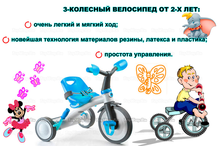 დაბოლოს, 2 წლამდე ასაკის ბავშვებისთვის – ტრიციკლი, ძალიან მარტივია ოპერაცია.